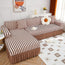 2025 L Shape Turkish Bubble Frill Sofa Covers : Beige Brown Stripe – Fabrella