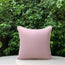 A soft pastel pink fabric with a minimalist and elegant design. The material appears to be a natural textile, such as linen or cotton, giving it a slightly textured yet smooth finish. The edges are adorned with a delicate fringed trim in an off-white or cream shade, adding a subtle decorative touch. The simple and understated look of this pillow cover makes it versatile, perfect for modern, bohemian, shabby chic, or farmhouse-style interiors. Its gentle color and soft texture create a cozy and inviting atmosphere.
